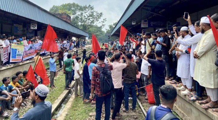 কুলাউড়ায় ট্রেন চালুসহ আট দফা দাবিতে রেলপথ অবরোধ