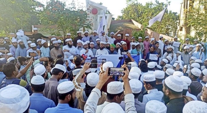 সমাবেশে বক্তারা বলেন, আবুল সরকার আল্লাহকে নিয়ে কটুক্তি করে এদেশের ধর্মপ্রাণ জনতার হৃদয়ে আগুন ধরিয়ে দিয়েছে, তাকে সর্বোচ্চ শাস্তি ফাঁসির ব্যবস্থা করতে হবে।