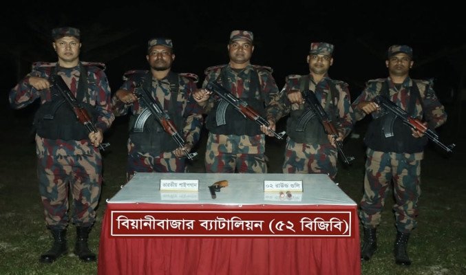 বড়লেখা সীমান্তে ভারতীয় অবৈধ অস্ত্র ও কা র্তু জ উদ্ধার