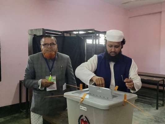 ত্রয়োদশ জাতীয় সংসদ নির্বাচন ও গণভোটে বিয়ানীবাজার উপজেলার কুড়ারবাজার দ্বিপাক্ষিক উচ্চ বিদ্যালয় ভোটকেন্দ্রে নিজের ভোটাধিকার প্রয়োগ করেছেন হেলিকপ্টার প্রতীকের স্বতন্ত্র প্রার্থী মাওলানা ফখরুল ইসলাম। বৃহস্পতিবার সকাল দিকে তিনি কেন্দ্রে উপস্থিত হয়ে ভোট দেন।
