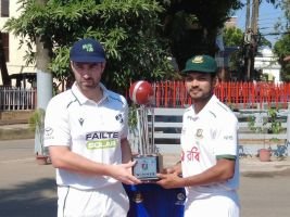 সিলেটের ক্বীনব্রীজের পাশে উন্মোচন হলো বাংলাদেশ-আয়ারল্যান্ড টেস্ট সিরিজের ট্রফি